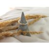 Jemný, sofistikovaný a ručně vyráběný! Tento prstýnek je tvořen broušenými skleněnými korálky o velikosti 3 mm v nádherném béžovém odstínu, které se krásně lesknou při dopadu světla. Doplňuje je jeden zlatý kovový korálek bez obsahu niklu, který dodává šperku luxusní nádech. Prstýnek je navlečen na pružné gumičce, díky čemuž se přizpůsobí velikosti prstu a pohodlně se nosí.