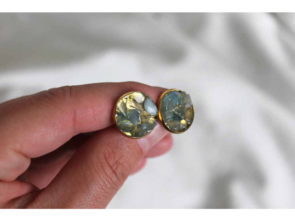 Náušnice s akvamarínem v pozlaceném lůžku – svěžest moře ve šperku